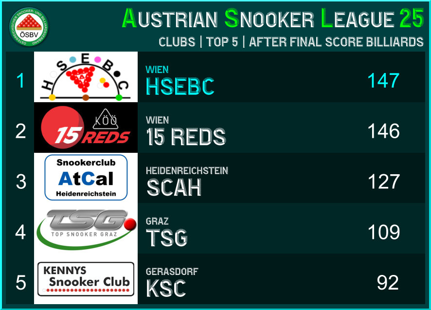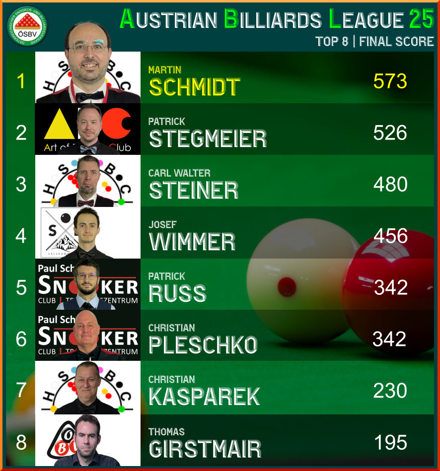 Rekordstaatsmeister Florian Nüßle (Bulls, S) gewinnt zum achten Mal in Folge den prestigeträchtigsten Pokal im österreichischen Snookersport und sammelt weiter…