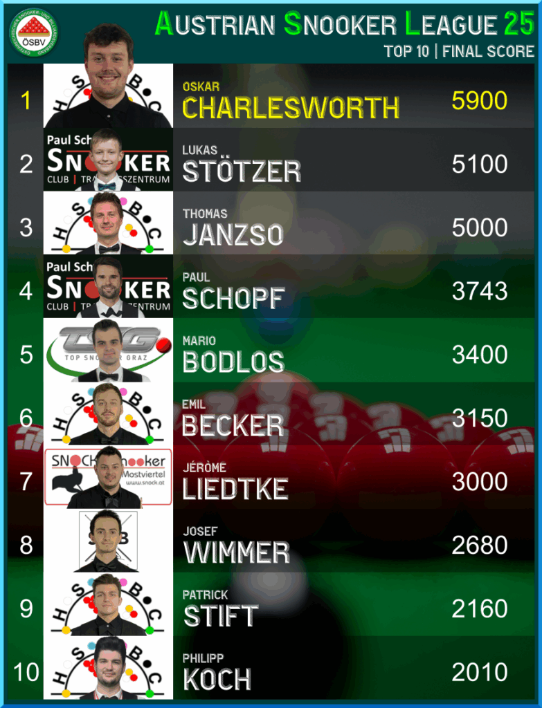Der ÖSBV gratuliert Andreas erneut herzlichst und wünscht ihm gegen Zhao Xintong alles Gute!
