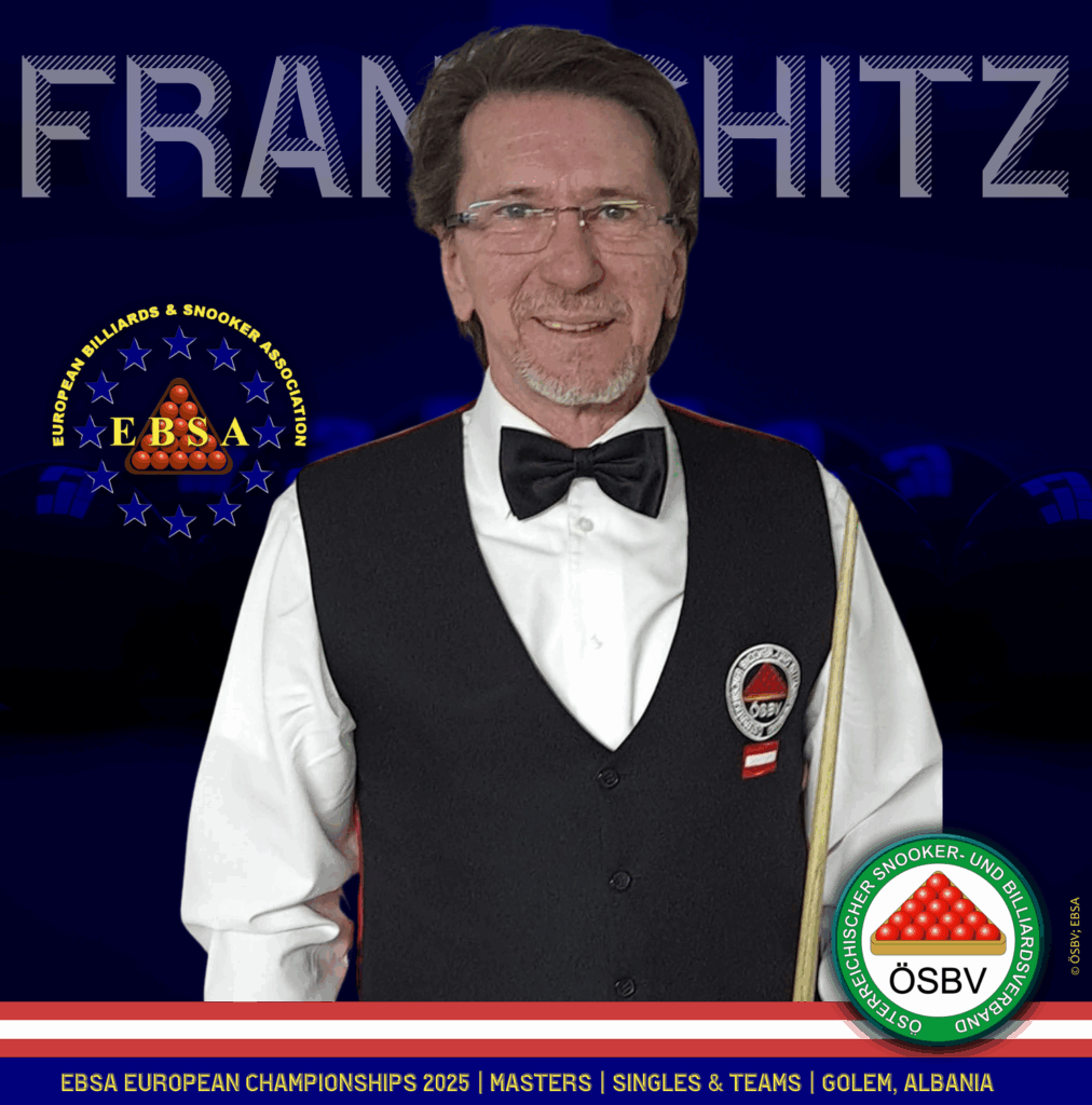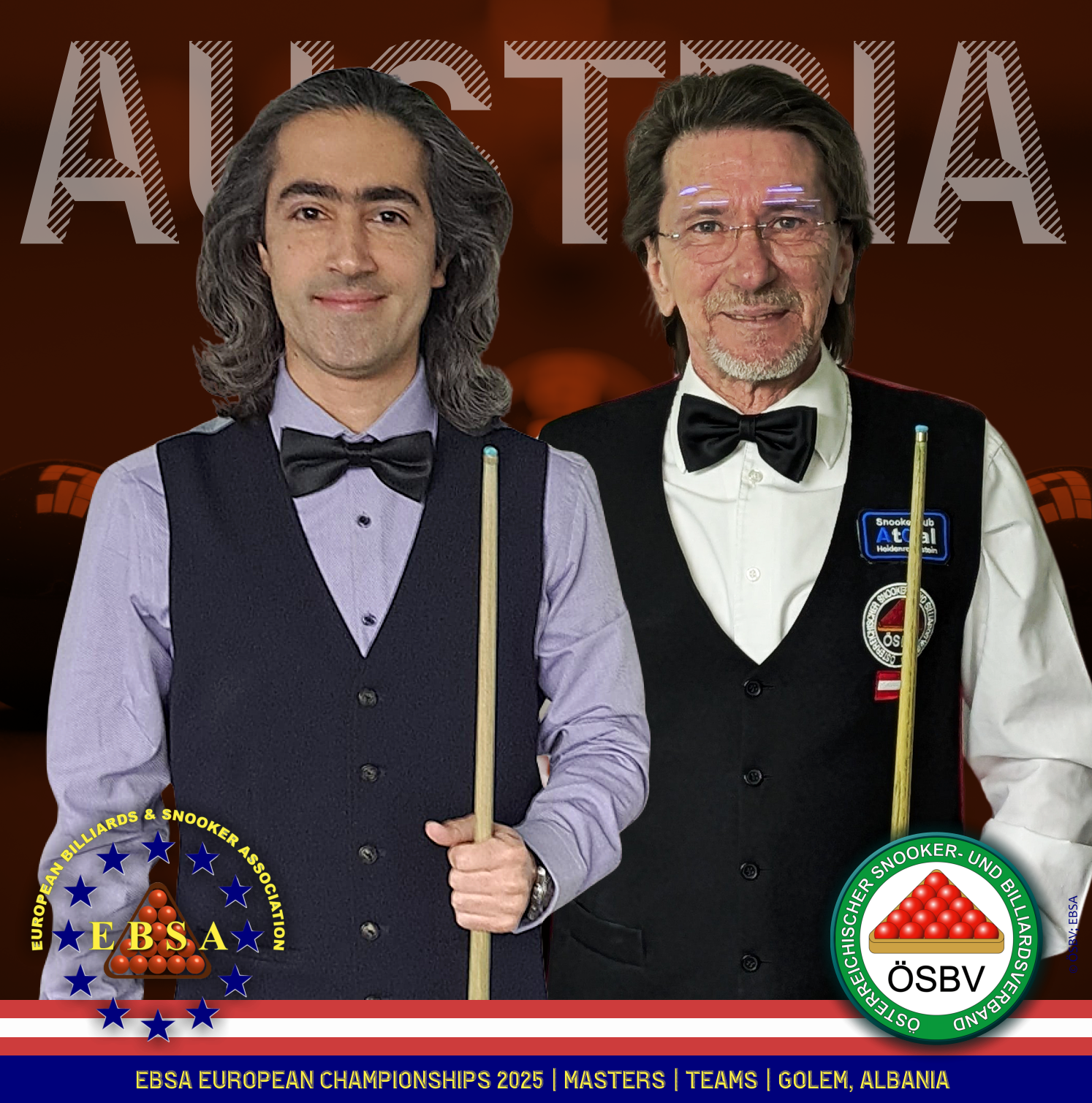 Österreich wird bei den EBSA-Europameisterschaften 2025 der Masters, die vom 4. bis 9. Oktober im albanischen Golem ausgetragen werden, von Clausdieter Franschitz und EM-Newcomer Peyman Chitsaz vertreten.
