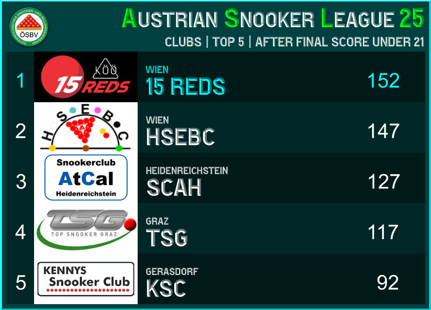 Für das vierte Mastersturnier der Austrian Snooker League 2024, das am 8. und 9. Juni im Kenny’s Snooker Center (KSC)…